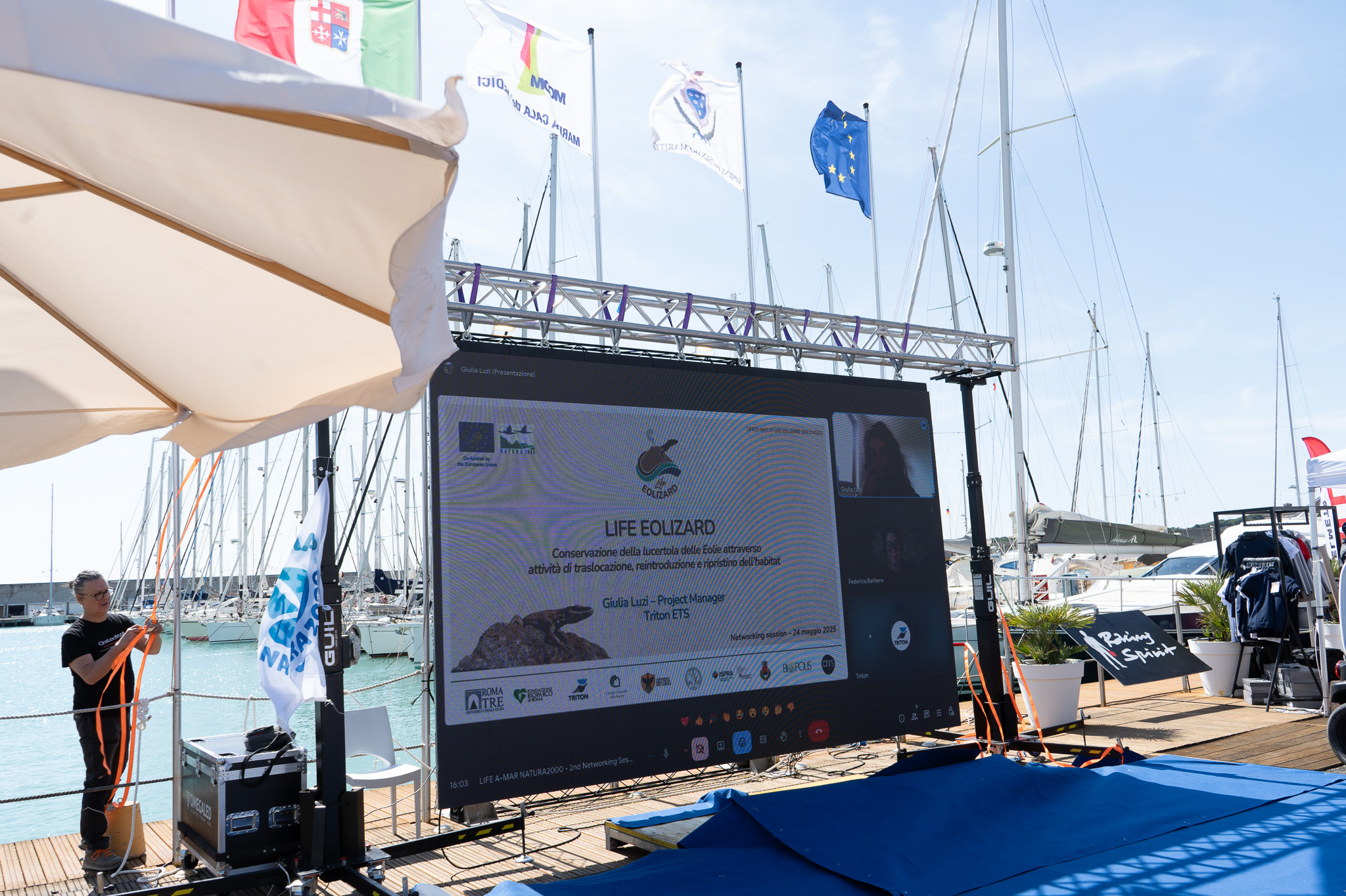 Entre ellos, Giulia Luzi presentó tanto el proyecto LIFE Eolizard -dedicado a la conservación de la lagartija eólica- como el proyecto MonOrniTech, centrado en el seguimiento acústico de la biodiversidad ornitológica en la Riserva dei Laghi Lungo e Ripasottile (Reserva de los Lagos Lungo y Ripasottile). A continuación, Federica Barbera ilustró las estrategias de los proyectos LIFE SEA.NET y LIFE DELFI para reducir la mortalidad de delfines causada por las actividades pesqueras. Diego Mattioli aportó la experiencia del proyecto LIFE PINNA sobre la recuperación de la Pinna nobilis, Massimiliano Bottaro describió las actividades de pesca sostenible de ELIFE en elasmobranquios, y Antonella Servizio cerró con LIFE Conceptu Maris, dedicado a la conservación de cetáceos y tortugas pelágicas.
