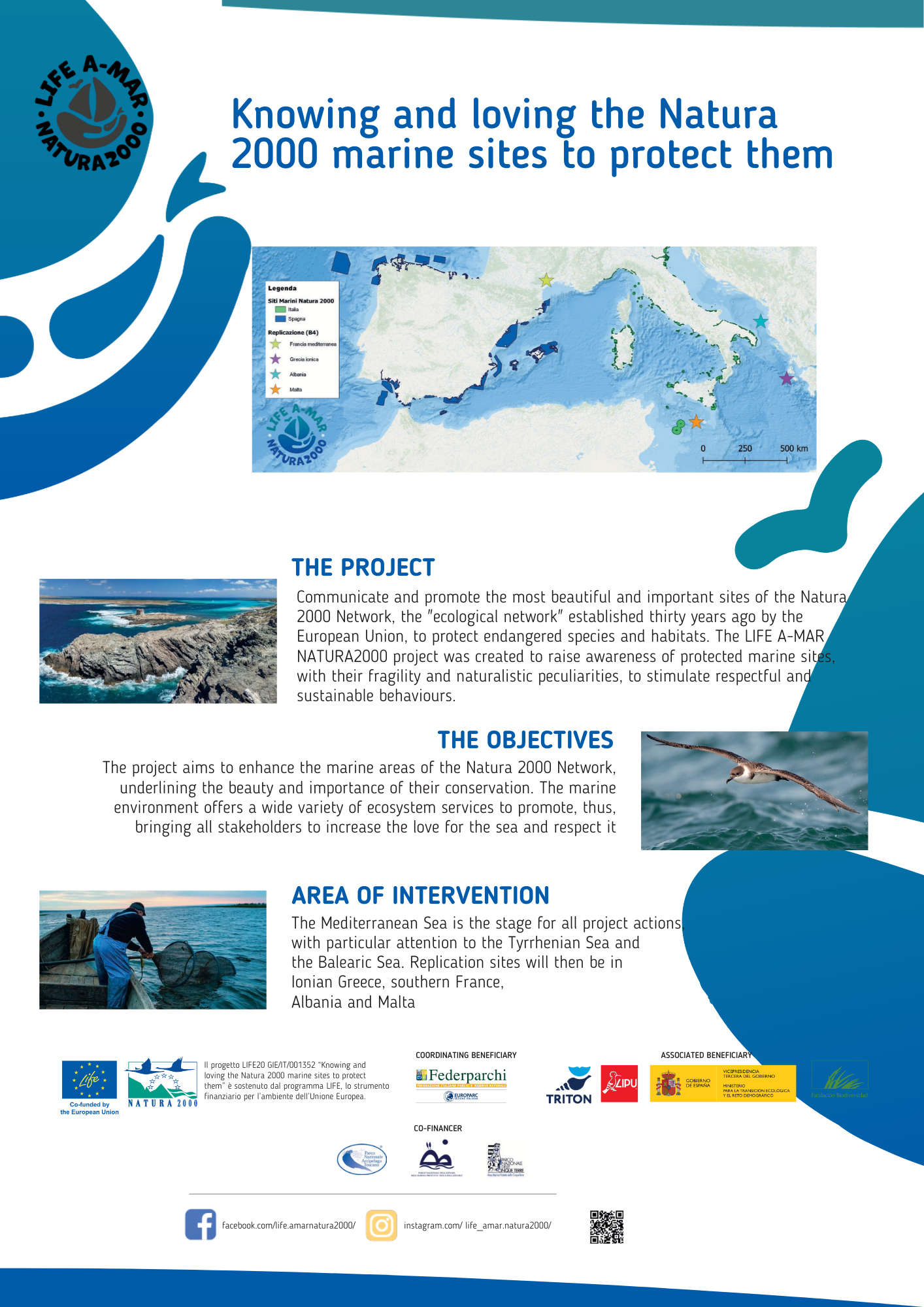 Il progetto LIFE A-MAR NATURA 2000 è nato con l’obiettivo di promuovere la conoscenza e la consapevolezza delle aree marine e costiere della rete Natura 2000 in Italia e in Spagna, coinvolgendo un ampio pubblico di stakeholder, operatori del mare e cittadini attraverso una strategia di comunicazione integrata. Nel corso delle attività sono stati utilizzati strumenti diversi — dalla comunicazione istituzionale alle piattaforme digitali, fino allo storytelling e alla produzione multimediale — per aumentare la visibilità delle sfide legate alla conservazione del mare e favorire una maggiore comprensione dell’importanza dei siti Natura 2000 marini.